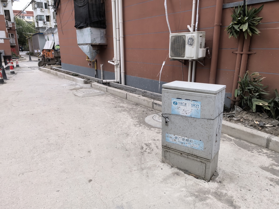 平塘路456弄26号楼北侧的“中国移动”和“中国联通”弱电箱。“中国移动”的弱电箱目前已完成迁移。