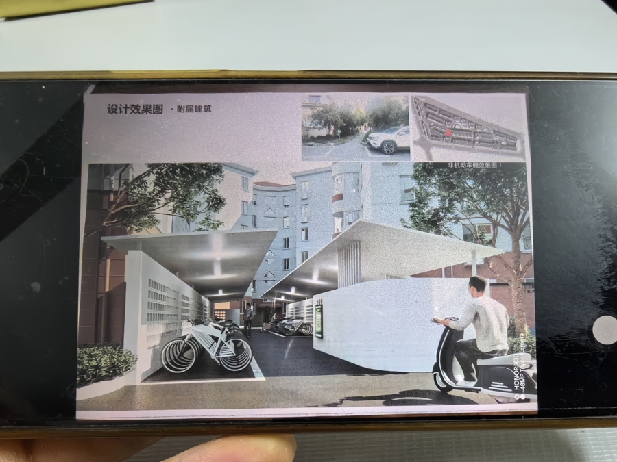 后续两处将要建造新的非机动车库,弱电箱必须要进行迁移以腾出地方。图为甘溪路100弄23号楼旁非机动车停车库的效果图。
